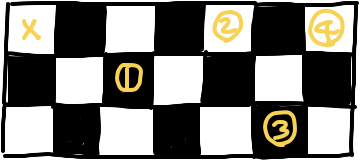 4๋ฒ : 2์นธ ์๋๋ก, 1์นธ ์ค๋ฅธ์ชฝ