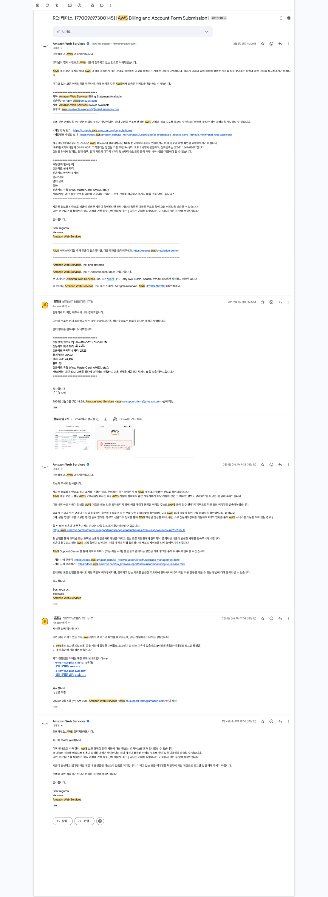 3. AWS Support ํ๊ณผ์ ์ค์๊ฐ ์ํต