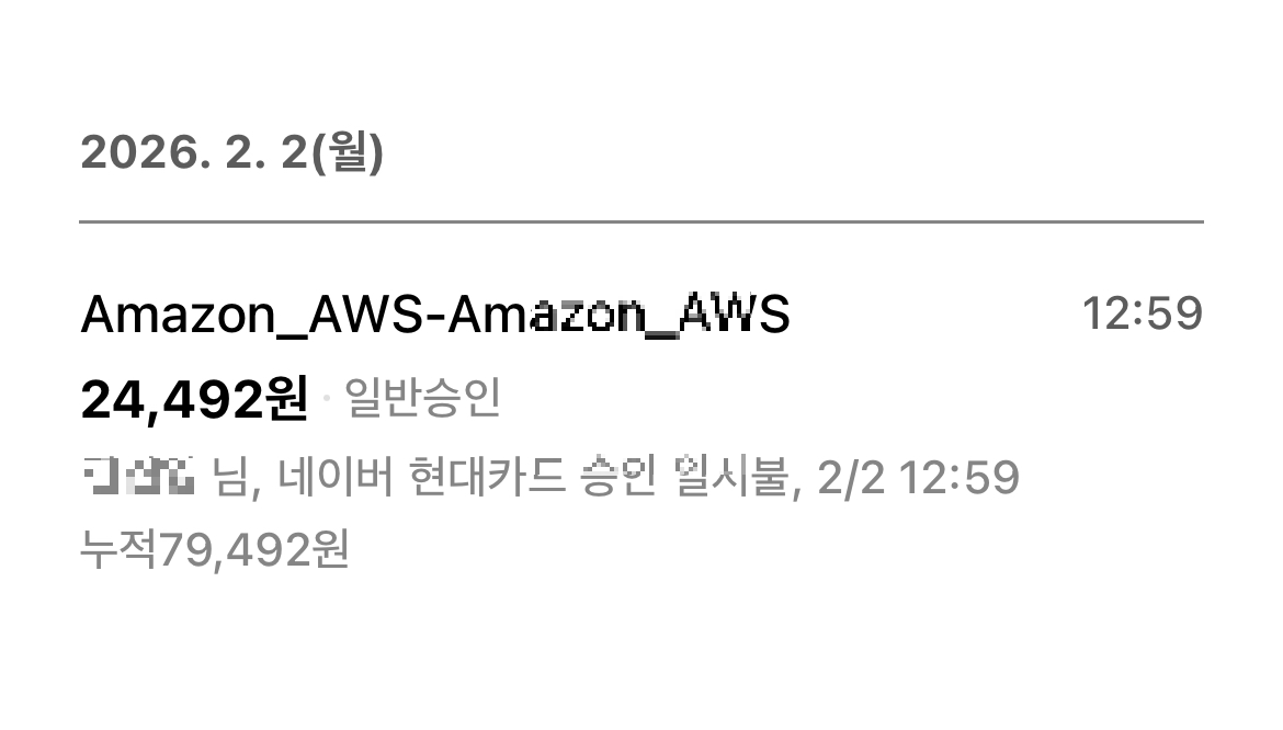 ๊ณต๋ถ๋ ํ ์คํธ ๋ชฉ์ ์ผ๋ก ์์ฑํ๋ AWS ๊ณ์ , ํ๋ฆฌํฐ์ด 1๋ ์ด ์ง๋๋ฉด ์ ๋ฃ๋ก ์ ํ๋๋ค๋ ์ฌ์ค์ ์๊ณ ์์์ง๋ง ๋ง์ ๋ฌธ์๋ฅผ ๋ฐ์ผ๋ ๊ฐ์ด์ด ์ฒ ๋ ํ๋๋ผ๊ตฌ์ใ ใ